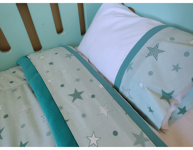 Kit de Cuna - Verde Estrellas Tones Verdes, Polar Verde Menta